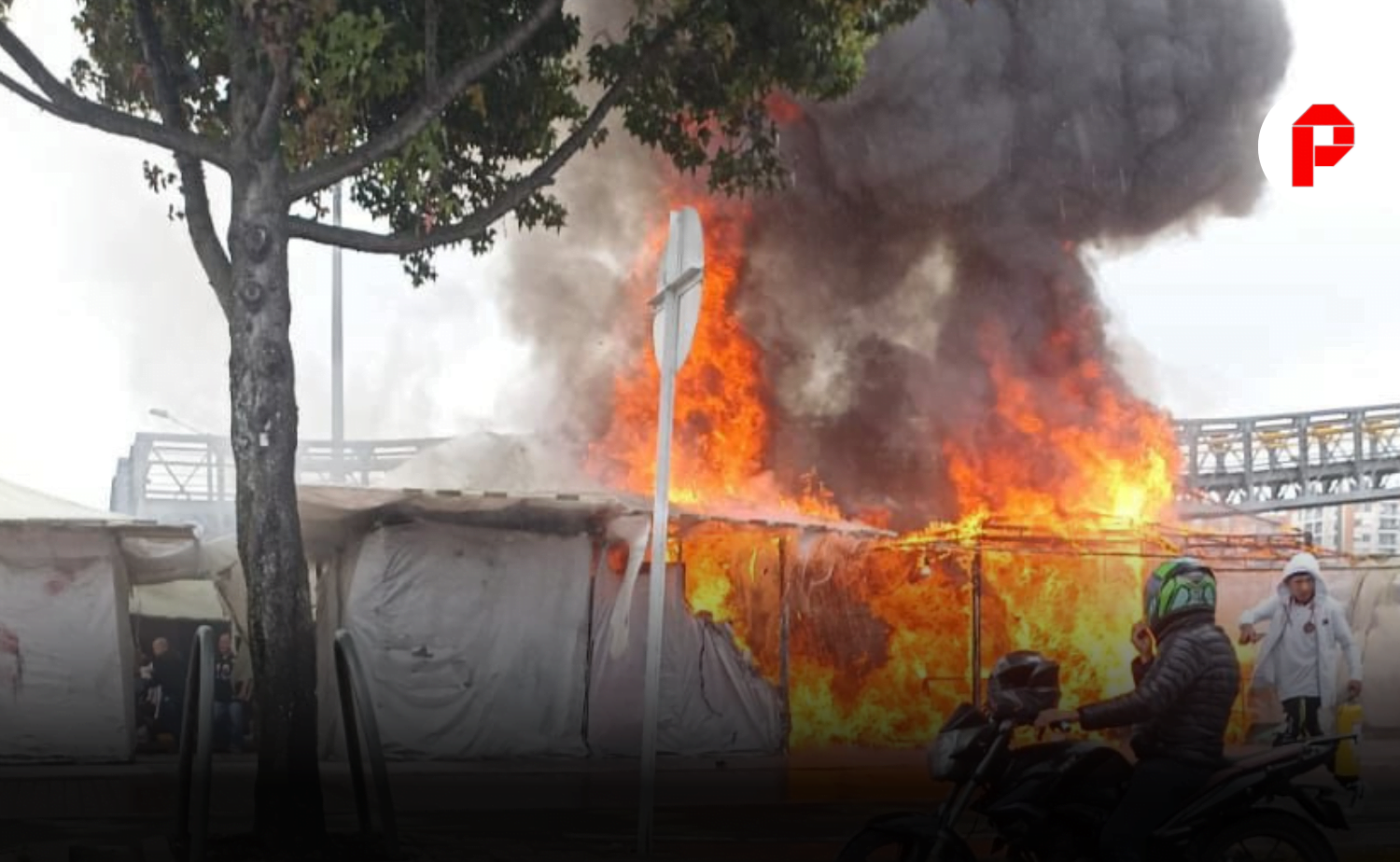 Incendio consume casetas comerciales frente al Portal de TransMilenio de Suba en Bogotá