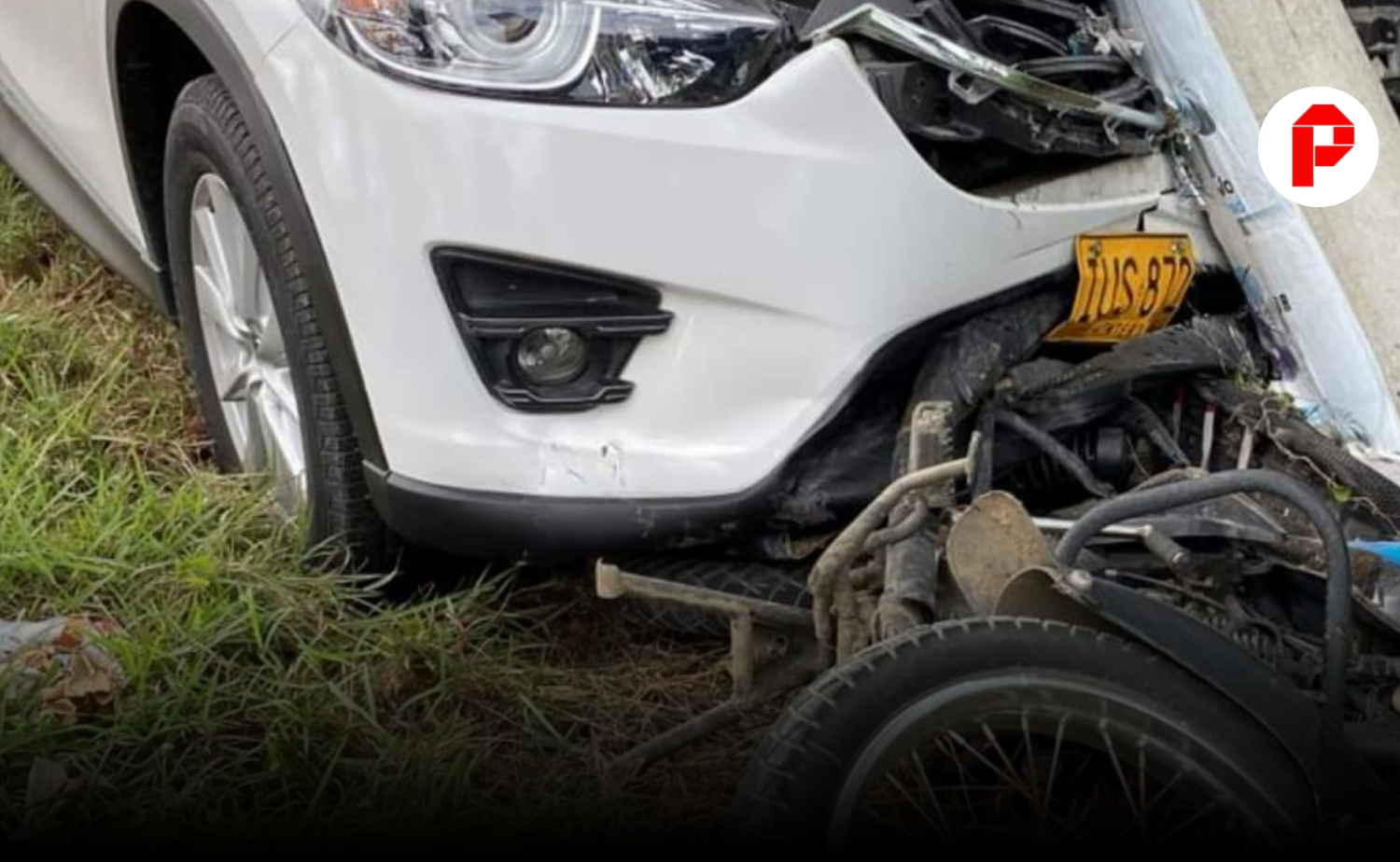 Al parecer una mujer que conducía un automóvil de color blanco arrollo a un joven motociclista que transitaba por la vía, el cual quedó atrapado entre un poste de energía y el vehículo, sufriendo heridas considerables.